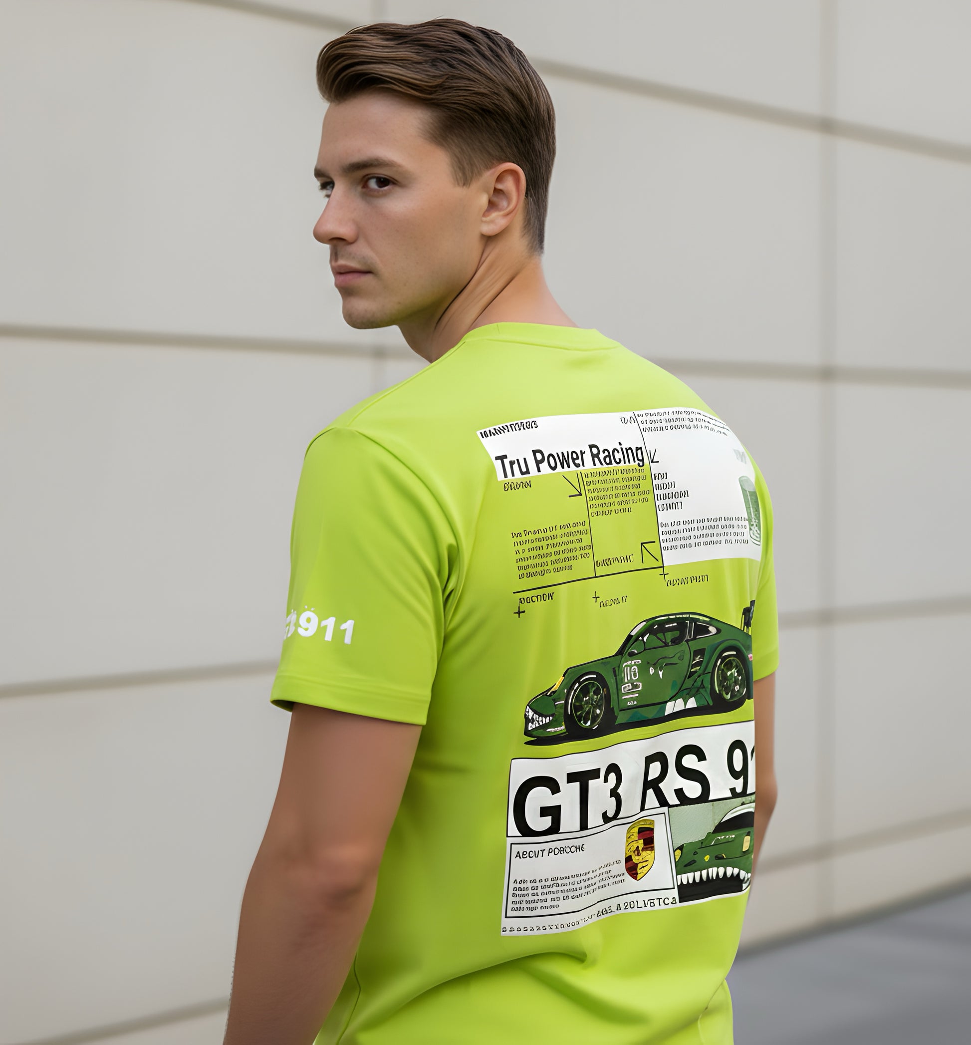 Upgrade your streetwear game with our premium oversized GT3 RS T-shirt, designed for those who live fast and dress bold. Crafted in a striking neon green shade, this tee blends luxury car culture with modern street fashion, making it a standout piece in any wardrobe.